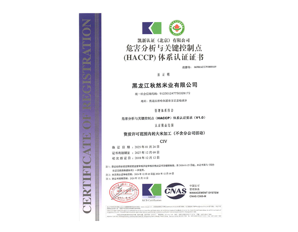 HACCP體系認(rèn)證證書