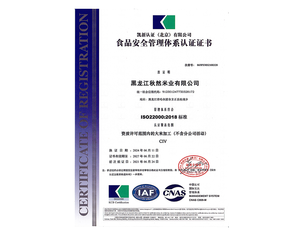 食品安全管理認(rèn)證證書